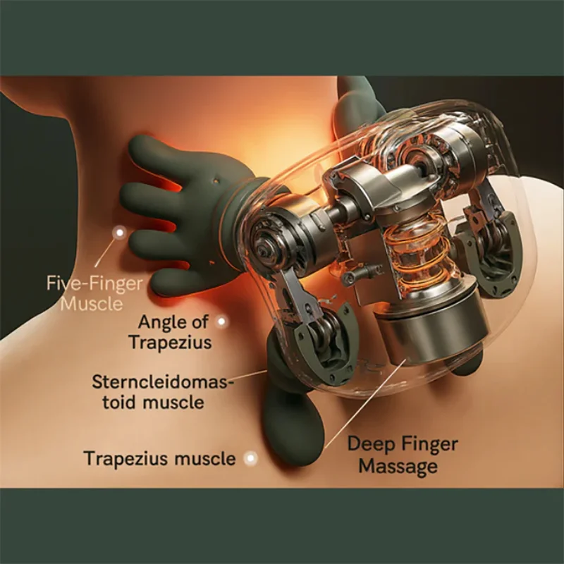 Dette apparat efterligner rigtige hænder med sit bioniske fem-finger system og rammer nøjagtigt dér, hvor spændingerne opbygges – og opløser dem på få minutter.