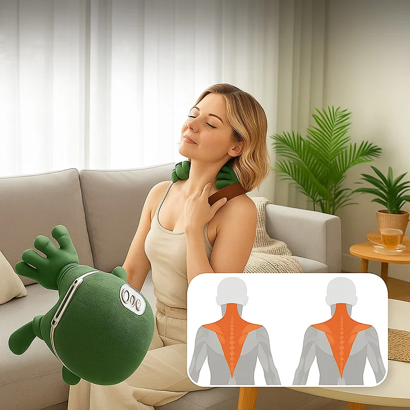 Det bruger 4D æltebevægelser og beroligende varme til at genskabe følelsen af rigtige hænder, der løsner spændinger i nakke, skuldre, ryg og mere.